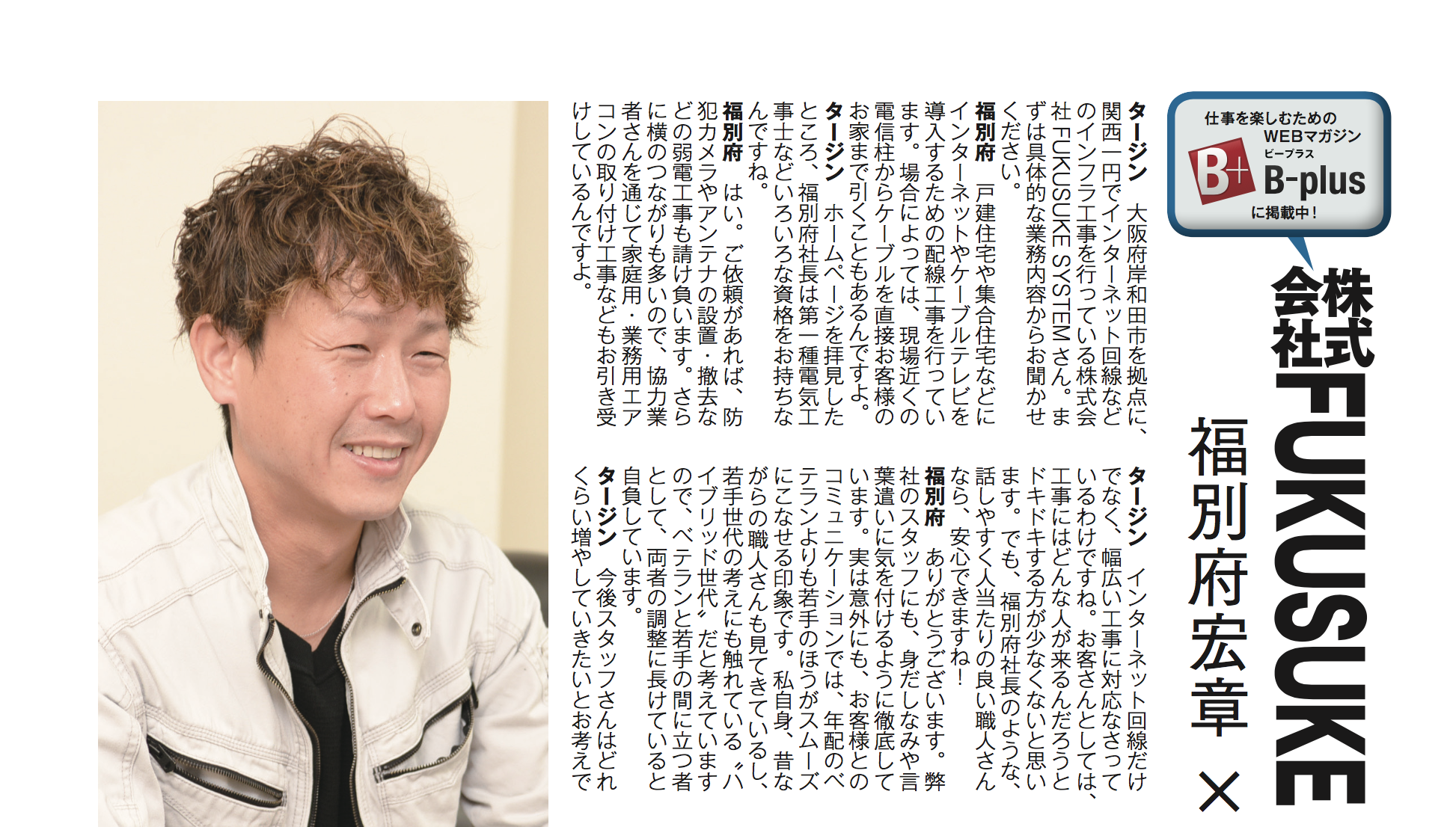 仕事を楽しむためのWEBマガジン〝B-plus〟に掲載していただきました!!
